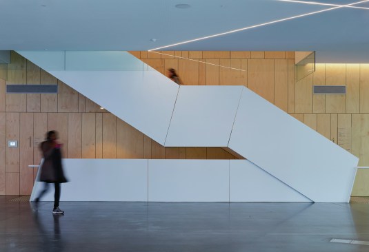 In alignment with UniSA’s target of 15 % reduction in campus-wide carbon emissions by 2021, the project embeds several energy-reducing strategies into the design that are both high and low-tech. The design of Pridham Hall enables natural light to penetrate deep into the building, from the basement level through to level 1, reducing the need for artificial lighting and heating by using efficient passive design features. The ground floor lobby space’s permeable glazed facades opens up and allows for natural ventilation, creating an indoor-outdoor space and flexible use. The northern and western lobbies are considered a single internal plaza space, with strong visual and physical connection to the outside, allowing full enjoyment of the warm Adelaide climate.