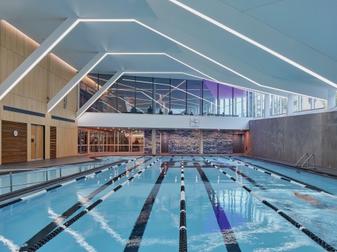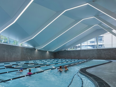 UniSA Sport is situated at the basement level and offers a gymnasium, dance studio and a unique 25-meter swimming pool. Vertical connection between these spaces and the ground floor is created by the use of glazed voids between the street and the lobby where views and daylight are able to penetrate with maximum effect.