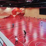 The heart of the building is the Hall, located on the ground floor. Differing from traditional academic main halls, this multifunctional space houses both sport activities, events and ceremonies. Designed with distinct red elements in the draping and patterns on the timber walls, the aesthetics of the Hall contrasts the surrounding lobby area, creating an energetic and vibrant space. The 1,600 sqm Hall includes a climbing wall and a student lounge mezzanine at the second level. In addition, the building can also be transformed from a sports hub to a capacious event space with the ability to host everything from banquets to UniSA’s annual graduation ceremonies for up to 2,000 people.