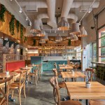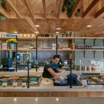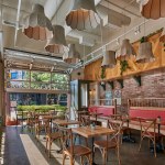 Focusing on natural materials and traditional millwork detailing, the design highlights Prima’s cuisine, both in production and display, to deliver an overall cozy guest experience. The visitor orientation begins outside at the streetscape, reducing ambiguity between two existing doors by repositioning the corner signage and replacing the canopy materials to guide guests towards the correct interior queuing. Large, decorative lampshade pendant light fixtures in the dining area highlight the tall, airy interior space. The restaurant features two large overhead doors, which can open up the entire building corner to the pedestrian-friendly streets, for an al fresco dining experience in the warm seasons. CORE’s design delivers an efficient operational flow for guests and staff in a uniquely challenging floor plan. For example, without a typical “back door” for delivery service, the secondary exterior door is designed to serve as service access, guest exit and also function as side entry for online order pickup. With minimal impact to the floor plan and MEP systems, the design transforms a previously modern, raw-steel aesthetic space into a fresh, warm, and inviting “old world” Italian environment.