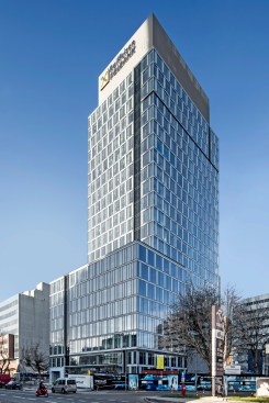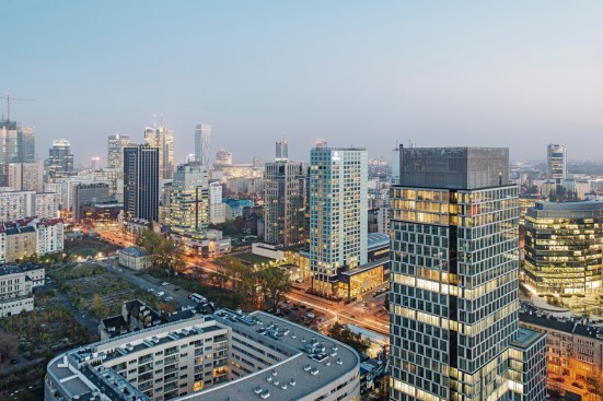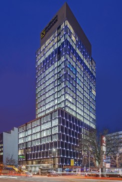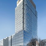 Prime Corporate Center is a 250,000-square-foot, Class-A office building in Warsaw, Poland. Occupying a key parcel at the intersection of two major arteries in the city’s downtown, SCB’s design respects the low scale of the street wall by setting the 23-story tower back from its eight-story base—a move that deftly integrates the taller massing into the existing fabric.