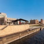 Part of the Principal Riverwalk, a redevelopment project of bridges, outposts, and plazas that connects 300 miles of trails along the Des Moines River, the Hub Spot contains a café, restrooms, and service spaces within a 2,200-square-foot zinc-and-glass pavilion. The pavilion’s projecting roof shelters part of the Spot’s paver-covered plaza, and undercanopy LED lighting illuminates the area after sunset. Geothermal heating and cooling contribute to the structure’s sustainable ethos. Juror Josh Shelton appreciated the fact that “the trail and the walk passed right through the building. The way that you could get from point A to point B was very lightly interrupted by this structure.” And to juror Gregory Hoss, the pavilion proved to be “an incredibly welcoming and extraordinarily friendly public gesture, but it’s done in a very sophisticated palette of materials, and very simply.” —Katie Gerfen