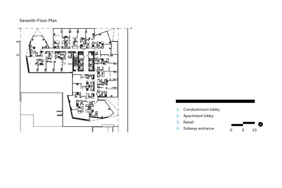 of plans—from studios to four bedrooms, varying in size as the leading edges