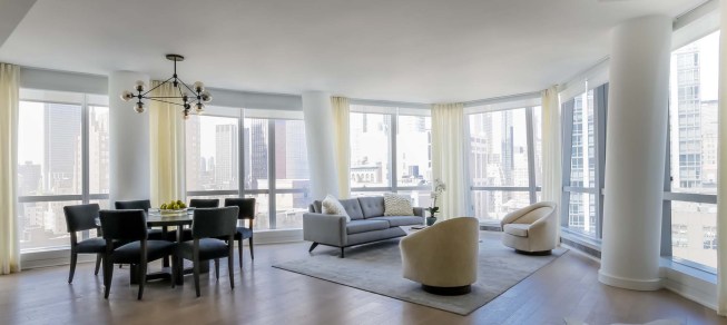 The bottom 22 floors, with 269 rental apartments developed by Equity Residential have an access on 28th Street and the top 18 floors with 81 condominium apartments developed by Toll Brothers have an access on Park Avenue. The rental tenants and condo residents share the lower level amenities, which include a pool, fitness center with a sauna, and a lounge.