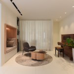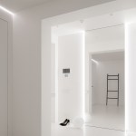 A minimalist interior with simple geometric shapes and clean lines required a suitable lighting system. The design solution is supported by linear lighting systems that outline the plane of the ceiling, as well as simple rectangular and cylindrical shapes of ceiling and wall luminaries.