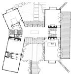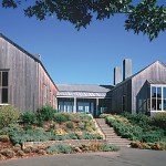 The project–the last house Eric Haesloop and Mary Griffin worked on with their late partner, William Turnbull, FAIA–conforms to the contours of the property. A glassed-in entry hall sits at the highest point on the knoll, connecting the home’s two wings. “We wanted the house to both acknowledge and claim the site,” says Haesloop. The entry hall accomplishes the former, as its transparency and elevated location allow the knoll to flow right through it. And the cedar-clad wings on either side firmly establish the home’s claim on the land.