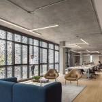 Profiles is an eight-story office building located on a one-way street.Pulling back from its three-story neighbor to the south ensures the oncoming vehicular traffic will always see a significant portion of the building’s façades. This increased overall visibility of the building also gives occupants greater access to daylight and natural ventilation while creating an accessible patio on the second floor. This open-air area addresses a 20% “open space” local building code requirement and together with the rooftop patio, provide users with ample outdoor amenity space.