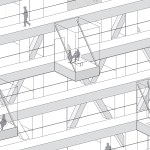 The stretched layers are strategically positioned to guarantee unobstructed daylight into all units, and to create adequate continuity of the building’s primary structure: a concrete-encased steel mega-brace that encircles the courtyard.