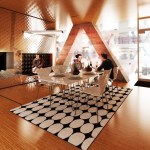 Each unit is a wooden shell bookended by a bathroom and a kitchen, with a movable wall in between that defines living and dining spaces, allowing use to determine the amount of space allocated to each function over the course of the day. The wall itself contains many apartment necessities, including a Murphy bed, nightstands, couch, TV mount, task lights, and storage. Floor-to-ceiling, high-performance insulated glazing at the exterior and corridor walls open each small unit’s spatial sensibility to include the courtyard and the city beyond, with privacy available through the deployment of blackout and roller shades.