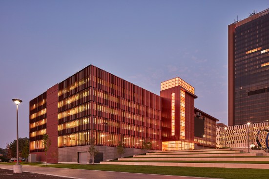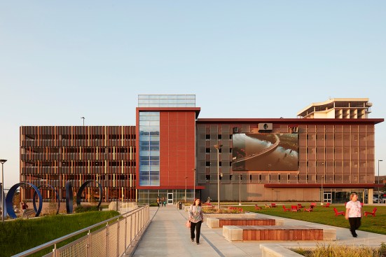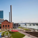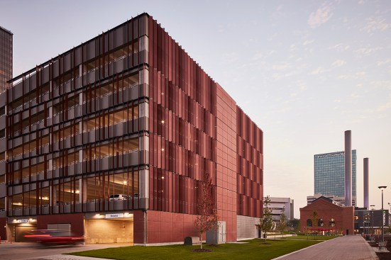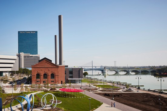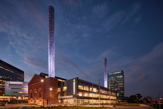 ProMedica’s headquarters is an adaptive re-use of two buildings: an historic, Daniel Burnham-designed steam plant, 124,000 square feet, and a brutalist junction building, 102,000 square feet. A new, 760-car parking garage on the south side of the park is dedicated to employees. The garage’s north façade features a large screen for public film screenings or concerts, and its Summit St. façade houses 5,200 square feet of street level retail space. With dramatic landscapes and articulated modern architecture, the design complements the scale of the existing city while creating dramatic gestures toward the waterfront.