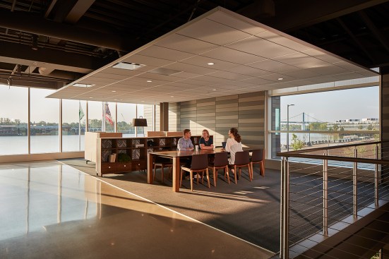 Established in 1986, ProMedica is a locally owned, nonprofit healthcare organization driven by their mission to improve health and wellbeing. As they grew organically, they focused on their clinical facilities, while administrative staff were housed across several locations. Because ProMedica sees its success rooted in the community, it decided to build a new, centralized headquarters in the heart of downtown Toledo. Located adjacent to Promenade Park on the Maumee River, ProMedica’s new home opened in 2017, and is transforming downtown by connecting employees and the community to the riverfront and each other.