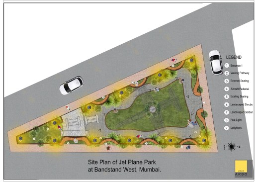 The main aim is to eradicate the boundary walls, which act as a physical and visual barrier for the people, and hence eliminate the separation between the park and the people, making it more accessible for all. Seating’s around the aircraft will be arranged all across the boundary of the park, sea-facing as well. The plant species used will add to the beauty of the place. The plane park will not only be a landmark for the people, but also be designed more meaningfully to be used for recreation and relaxation by the residents and the tourists.