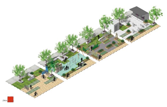 Public Square is a plug-and-play system of interlocking unitized squares, roughly 8’x8’ in size, that provide the platform for a wide variety of surface module programs. With applications ranging from seating to retail stands, to play equipment, to gardens and green space, Public Square can be assembled into endless configurations in order to suit the needs of different neighborhoods, or change incrementally as cities adapt to automated vehicles. The system allows for easy access to utilities, works with existing drainage paths, increases storm water retention, provides bio-filtration, and can embed smart-street technology.