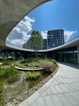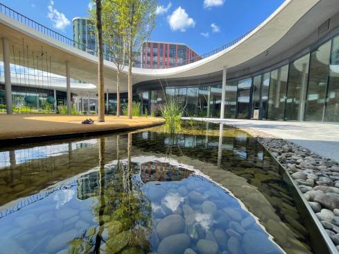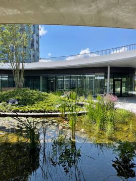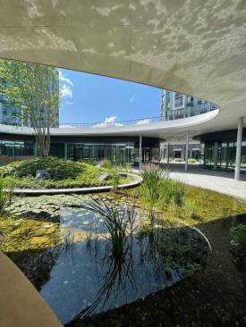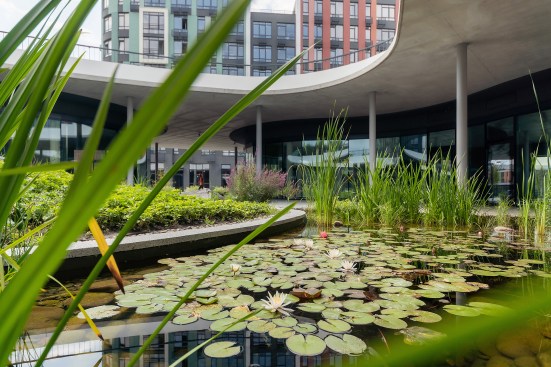 Residents received a piece of nature in the heart of the residential complex where everyone can touch the pond, relax and reconnect with nature.