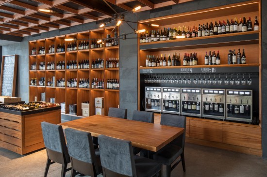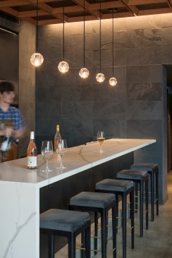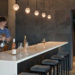 Custom mahogany millwork, raw steel, slate tile, and polished concrete bring a modern aesthetic to the feeling of a rustic wine cellar. The materials were chosen for their ability to wear well and develop a patina over time. Open storage for cases and bottles, along with a state of the art, self-service, commercial cruvinet system, enable patrons to peruse and explore Pullman’s wine offerings on their own. Locally manufactured custom tables, an intimate bar, and the private dining room welcome a range of groups of locals and visitors.