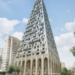 The complex, historic context was an important consideration for the design. The Studio chose a tapering form to allow maximum light to fall on the public plaza below and to create ample open space surrounding the structure. Referencing Jerusalem’s existing architectural language, the façade features a geometric pattern composed of Jerusalem stone and glass. The pattern and relief of the façade refers to traditional, local typologies while also fulfilling contemporary functions. At street-level, an arched colonnade connects the public plaza to the inner shopping arcade. With its many amenities and public spaces, The Pyramid is set to become an integral part of the neighborhood, servicing citizens and tourists alike. The project is set to break ground by 2019.