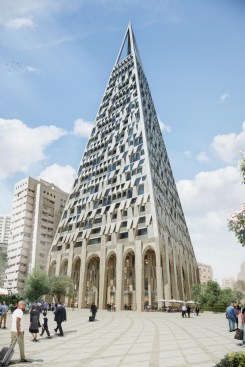“The Pyramid mediates between ancient traditions and myths, while providing a 21st century reinterpretation of that great form,” said architect Daniel Libeskind. “The design complements the context and gives the neighborhood a vibrant public space in the heart of the ancient city,” added Libeskind.