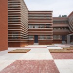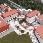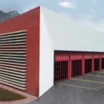 The fire station building represents the core function; strategically located next to the road access, its iconic facade represents a virtual gate to the complex, being the starting point of the whole masterplan development. The first floor houses the fire-fighting garage and equipment warehouse, in the mezzanine are located a training gallery and small meeting rooms, while the second floor is dedicated to the firemen rest activities: dormitories (with a maximum capacity of 30 beds), club, different relax and leisure areas, library and study rooms, a small clinic and medical and psychological counseling room. The second floor space is characterized by a series of iconic skylights which strongly mark the common spaces; together with the two squared courtyards, they help creating a better living space for the staff on duty.
