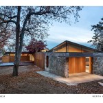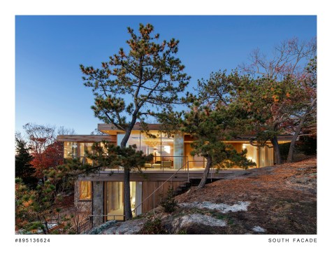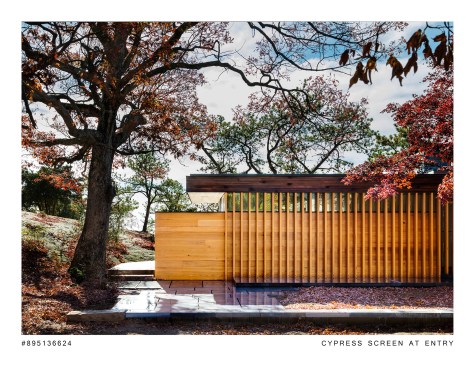 Reconstructed, refitted, reprogrammed… phoenix-like in its new life as a home for a family with college-age children, this house occupies a long-abandoned granite quarry overlooking a series of contiguous inlets, salt marshes and a small harbor on the Connecticut shoreline. Originally built in the seventies, the home suffered from an array of technical woes caused by a lifetime of exposure to coastal weather. In spite of the building’s dire condition, the design team appreciated the basic spatial relationships of house and site and its low-slung, discreet massing as seen from the water. Our clients, a university administrator and a professor of music, purchased this property from the original owners with the intent to restore the home and protect the site. Working as both architect and general contractor, the design team rearranged the upper floor, moving the master bedroom to the east where an enormous granite outcropping shields early morning sun. The kitchen moved west, overlooking an inlet and salt marsh. The living and dining rooms and their exterior terraces resettled to the south, affording views across the rocky harbor to Long Island Sound. The designers reduced obstructions to views by removing heavy guard rails, adding full height windows and doors, simplifying roof, wall and floor surfaces, extending overhangs to reduce heat gain from summer sun, and lifting the northern corners of once flat roof planes to introduce clerestory windows. In addition to careful spatial manipulations to the existing home, the design team introduced a series of new wooden elements throughout the project. Salvaged wood from the home’s framing was reused to restructure and extend roof and floor cantilevers. New charred cypress siding boards (using the traditional Japanese shou sugi ban method) resist fungal rot and weathering. Those same boards sheath a large bi-fold garage door, turning a familiar suburban fixture into a simple panel of wood, complementing the hues in adjacent stone walls. Maple boards sourced from Vermont form the interior surfaces and the millwork, doors and cabinetry. At the entry, deep vertical cypress louvers obscure views until one enters the house. An accent wall clad in wide, matched cypress boards separates a new stair from the lower bedroom level. The stair guard is formed from twisted bentwood maple slats which delaminate from the maple clad walls in the stairway. Wood is the means by which an outwardly modest building delivers spaces that reach beyond the boundaries of its rooms.
