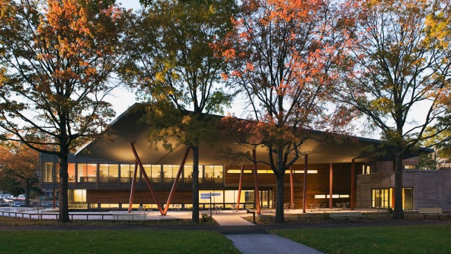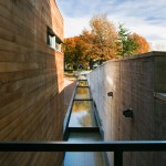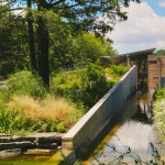 Completed in 2011, the 117-vehicle “parking garden” is composed of a variety of paving materials including permeable pavers to allow infiltration of water and parking bays interrupted by planted bioswales that manage stormwater. Nearby is a new Horticulture & Maintenance building, fabricated of pre-manufactured corrugated metal siding, cedar siding and corrugated translucent panels that maximize daylight.