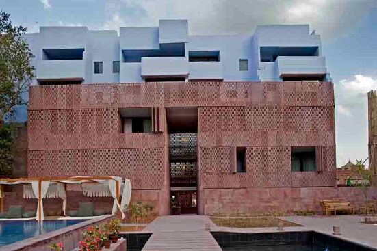 Set in the heart of the walled city of Jodhpur, Rajasthan, RAAS is a 1.5-acre property uniquely located at the base of the Mehrangarh Fort.The brief was to create a luxury boutique hotel with 39 rooms in the context of the Old city quarter of Jodhpur. This has been translated into a project where there is a dialogue between the old and the new. Luxury was about being authentic both in terms materials and workmanship, and in providing visitors a tactile and sensual experience within the historical context of the old city of Jodhpur without aping the old.