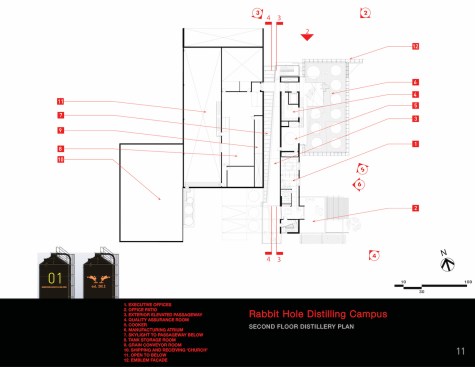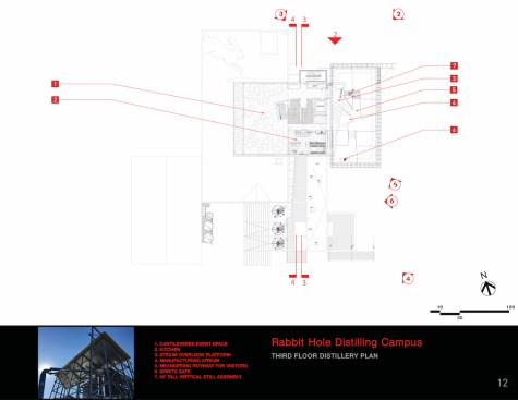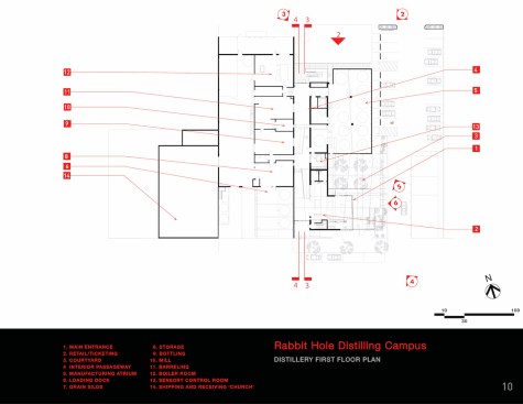 The architectural innovation is based on transparency and a “form follows process” concept: The structure took shape in direct response to the bourbon production process to showcase both the journey from the grain to bottle and the capacious copper and steel equipment.