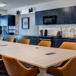 The foundation’s existing second-floor office had a reception area, breakout space, and a meeting room. The office expansion project also included converting the second-floor conference room into shared office space. Other second-floor updates included new furniture and finishes for select communal and private spaces. Total office space is now 3,000 square feet.
