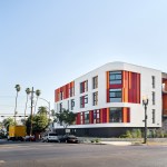 The architects/developers focused on a target market of young professionals in creative fields, such as film and technology. Open floor plans for flexibility, ample bathrooms, home-office space, natural light, outdoor spaces, and pops of bold color address this demographic. Even though located in a borderline neighborhood, the architects gave the building both boldness and transparency to integrate it into the area, rather than isolate it behind a high, impersonal fence.