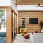 The Ramsey Residence contemplates a simple plan in an exuberant manner. An orthogonally refined frontage composing spatial depth and materiality is capped by a sharply projected eave. This cues the organization of the home along a tall, clerestory-lit spine running the length of the home. A formal entry and foyer lead to the main living room and spacious kitchen flanking the axis. Support spaces are discretely tucked away to allow marble slab and wood trim finishes to delineate the spaces. The axis continues as a tall glazed corridor cleaving two outdoor courtyards: ‘fire’ for entertainment, and ‘water’ for contemplation. Private spaces depart the axis to resolve the ensemble with the same attention to material detail and spatial poise as discovered upon first sight.