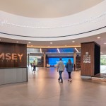 To provide the extra space needed for these important guest amenities, the design situates the bookstore and café inside a second-floor connector and directly behind the main reception desk, placing them front and center as visitors enter the building.