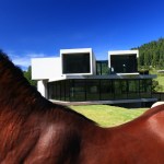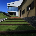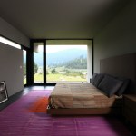 Two main buildings constitute the first floor, which comprises the master bedroom with bathroom and dressing room; two twin bedrooms, each one with its own bathroom; all three spaces count with black polished concrete flooring and a formidable terrace overlooking the mountain scenery.
