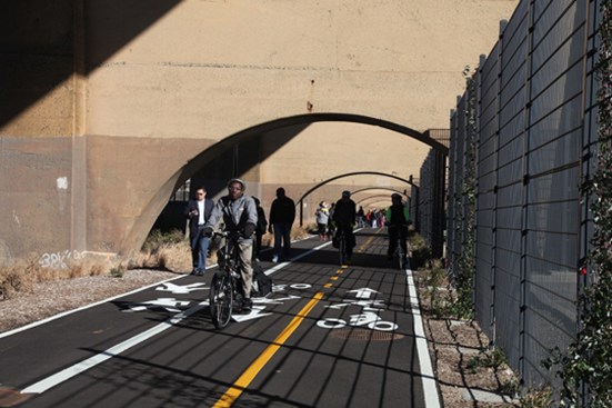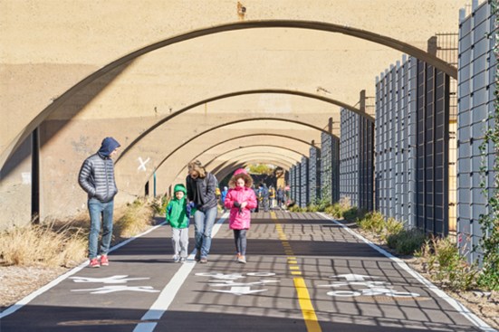completed the Randall Island Connector in New York City. The last of five funded projects in the firm’s twenty-project South Bronx Greenway master plan, this quarter-mile, dual-use path links 132nd Street with Manhattan’s Randall’s Island, providing pedestrians and cyclists with the first direct access to its 330-acre park, which opened in 1936. Today, the island’s amenities include more than 60 sports fields, a golf center, batting cages, boardwalks, picnic locales, and natural resources areas.