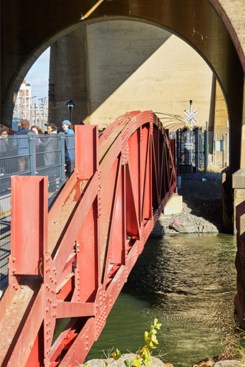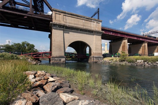The path is also remarkable for creating the only ADA-compliant access between Randall’s Island and the South Bronx. This access is achieved through a grade crossing over rail lines which incorporates an automated gate mechanism that closes the pedestrian access to accommodate the freight train and the addition of decking of a dual-purpose bridge. The bridge was constructed in 2009 as part of Con Edison’s electric expansion project from the Bronx to Randall’s Island, and was designed in partnership between Con Edison and New York City.