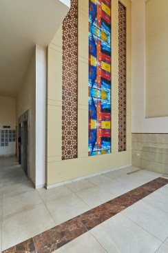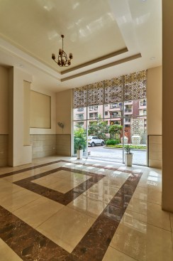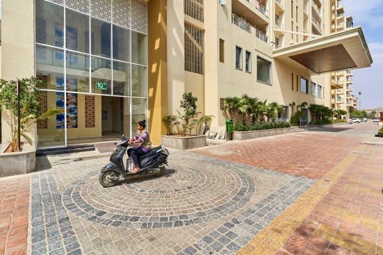 In order to cater to the premium needs of housing, the development consists of all high-end facilities and amenities. This is achieved in ways such as- provision of bigger rooms with ample functional spaces, all blocks are surrounded by passageways, etc. Keeping the design elements consistent throughout the establishment, all the tower drop-offs have Rangoli patterns on the floor. In addition to this, feature walls with similar patterns are also created in front of the drop-offs for each tower. All the tower blocks have an underlying activity area- highlighting the community-driven design development of this project. One of the main highlights of the development is the Clubhouse. This accommodates interactive spaces promoting community participation for the members. The Clubhouse is spread across a total of four floors- with the inclusion of staggered or stepped terrace gardens on each floor used for landscaping and spill out spaces. The USP of the project- being landscape- is also highlighted in the way the green areas are connected to the lobbies and passages. The facade of the building blocks is in golden brown and white, which is in contrast to the vibrant Rangoli Garden, an adjacent establishment, as well as in contrast to the pink city of Jaipur.