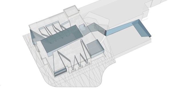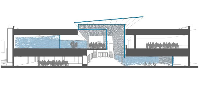 Preserving the building’s past, existing museum galleries are preserved and repurposed for the creation and editing of specialized digital media and collaborative work spaces. The reuse of these spaces with the proposed intervention layers past and present and supports the continuity of the center as a Public site.