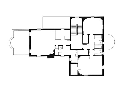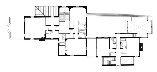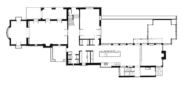 Architecturally, the original house had a very strong enfilade, which McInturff extended with a new dining area and courtyard, treated here as an outdoor room.