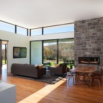 Jordan, an architect and managing director of Gensler’s Washington DC office, designed an open, glassy house with spaces organized around a large, central family room. The house opens to the west with dramatic views to the mountains from the floor-to-ceiling windows located throughout.