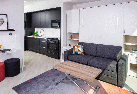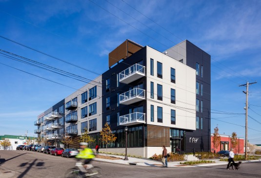 Located one block from the light rail in Saint Paul, Ray offers modern micro-apartments for residents opting to minimize their footprint. Over 75% of the 79 units consist of studios ranging from 372-505 SF. Thus, the designers endeavored to maximize function, emphasize quality, and reduce fuss. A “Communal Living Room” is the social heart of Ray, providing common space for residents to work, relax, or entertain as an extension of their units. Flexibility is key, featuring public and private areas that double as the office or a place to host a dinner party. Custom kitchens, smart storage solutions, and convertible furniture provide residents a smart lifestyle at an affordable price without sacrificing quality.