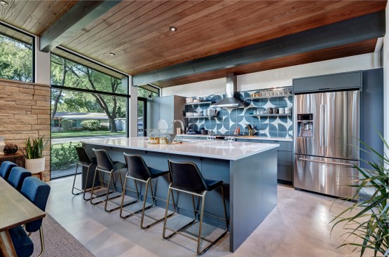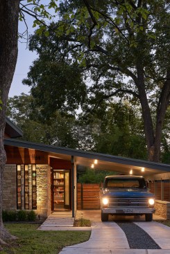This Central Austin house was remodeled in the spirit of the original Mid-Century Modern house, with an open plan, honest natural materials, and a direct connection to nature. A balance of natural light, simple materials, and functional flows are integrated with controlled views and atmospheric variation. Respect for the original home’s scale and stylistic origins lead to a house which is appropriate and celebrated within its neighborhood context and expressive of the owner’s personality and collections. Collaboration with the owner, who had already lived in the original home for 10 years, further rooted the design both aesthetically and within the neighborhood.