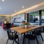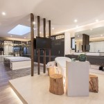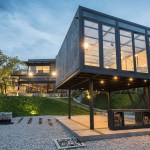 When Sobrado + Ugalde arquiectos conceive this house, they knew it was going to be seen from all angles, so they decided to give movement, transparency and privacy where needed. The pedestrian access takes you over a bridge towards the first concrete block —which is the main distributor element of the house— through the first facade, an atrium flanked by a triple height wall, that protects the house of vehicular stream and a glass facade to light up the connection circulations of the different areas. The view reveals when going into the house and walking through the corridors and ends in the double height areas opening towards the terrace which divides the house in two, giving it a sense of horizontality and lightness with magnificent views.