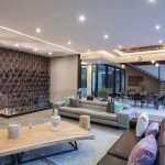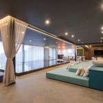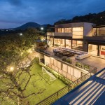 Answering to the topography we decided to centralize a block of circulations from the access that joins the 3 levels, using the 5th facade for green gardens and studios. The access floor is where the house daily life happens with all services rooms including the kitchen, living and dining room that are surrounded by a terrace that opens to the horizon leveling all spaces. On the third level we planned the additional areas such as swimming pool, cinema and ballroom according to the topography of the lot.