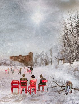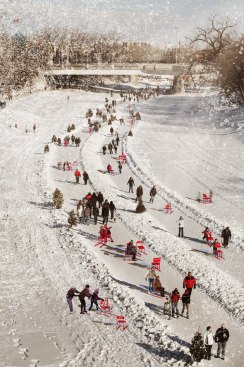 The chair-ski combo invites the user to push, pull, sit or glide in tandem or solo, while also setting into motion other chair activities such as musical chairs, or learning how to skate. The fifty words assigned to each chair will be mindfully selected by a local art historian to enable users to physically construct improvised phrases or reconstruct narratives or memories of Winnipeg based on the infamous fridge magnet game. Using words and materials of the place, Recycling Words offers a sustainable art installation that allows users to reconstruct old stories and make new memories along Winnipeg’s Red River Mutual Trail this winter. KANVA looks forward to the opportunity of participating in this collaborative endeavor.