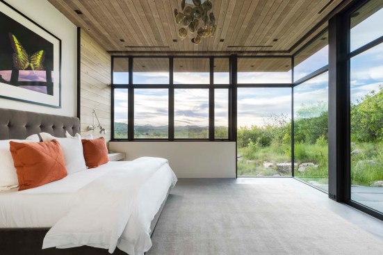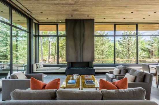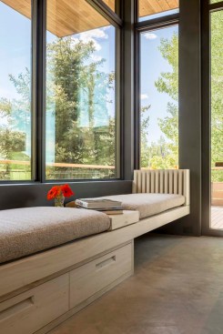 Designed for a couple who enjoys entertaining and being outdoors, the house utilizes the simple idea of removing solid walls and allowing natural features to act as exterior walls and privacy screens. Significant windows allow the evergreen and Aspen grove to the South, and a near – vertical craggy butte to the North to become the spatial definitions for living spaces. The architectural expression is minimal and spare, focusing on nature and the material palette.
