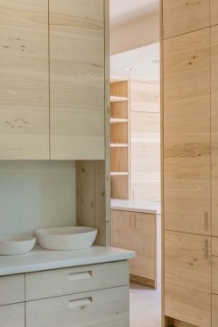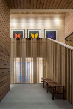 The trees’ filtered light is emulated in wood trellises throughout the house. The separation of elements helps clarify the materials and craftsmanship of the home.