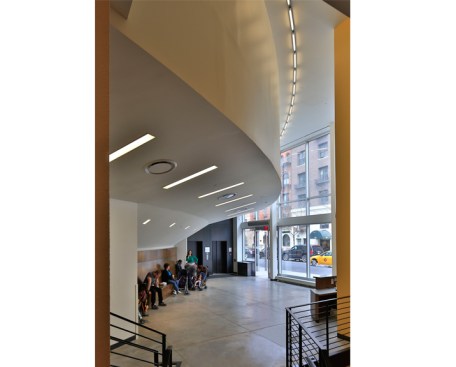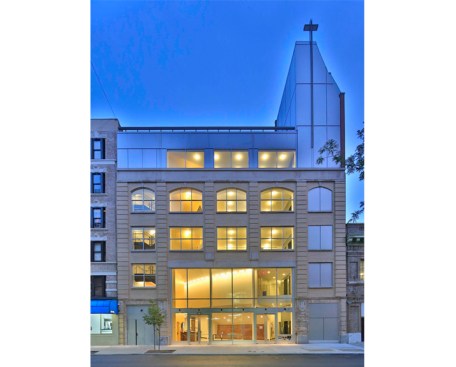 The new Redeemer Presbyterian Church represents a dramatic transformation of a circa 1913 parking garage into a worship space and community center. Situated on a lively commercial side street on Manhattan’s Upper West Side, the location was seen as ideal for Redeemer’s purpose of serving and being accessible to a growing inner city congregation. The design aims to reinforce this purpose. The street façade restores the industrial feel of the original building, onto which discrete interventions are added to mark its new use, including a new tower emerging from one corner and an inviting double story glass entry to open up the lobby to the street.