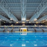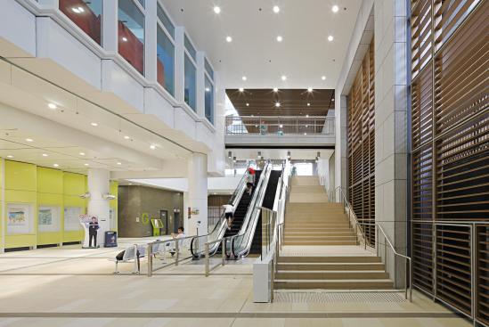 The redevelopment’s master plan was designed to integrate the site’s many functions into the existing urban fabric, facilitating 24-hour north-south access across the site. The plan envisaged a holistic integrated design which responded to the surrounding environment in the form of a “continuous green line” from the recreation ground to the swimming pool complex, ensuring that the building became part of the park.