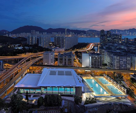 The Kwun Tong Swimming Pool complex is one of the most popular public swimming pools in Hong Kong. With its vast open space, the Kwun Tong Recreation Ground hosts the district’s annual Lunar New Year Fair. The project demonstrates how sustainable design can be executed by giving due consideration to social dynamics, creating a design with high building performance that also caters for the needs of the community – a true demonstration of how architecture can help create social sustainability.