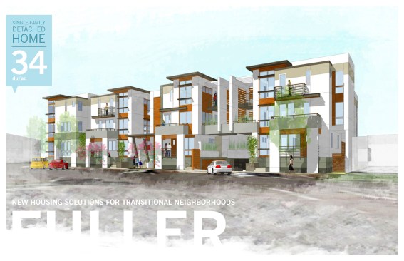 Eighteen single-family detached, owner-occupied homes (at 34 du/ac) sit atop a concrete podium on a half-acre, with 10 of the units having direct access to a private garage below. Street front homes have raised porch entries that create a sense of separation, while engaging the activity of public sidewalks at the pedestrian-scale.