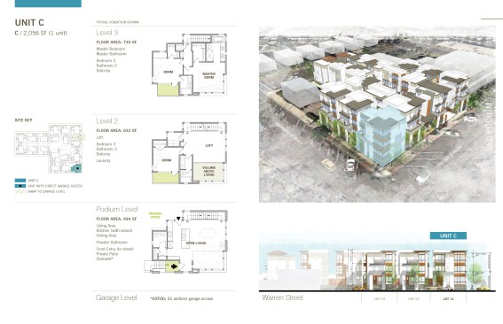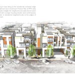 Homes internal to the site are oriented around a landscaped courtyard with parking garage access by staircase and elevator lobby. The courtyard is the social nucleus of the urban block and also provides neighborhood privacy and enclosure from the public realm.