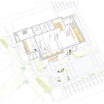 The team at SpaceSpace removed the structures in the yard, and, hampered only by local height limits, replaced them with a poured-in-place concrete structure that serves multiple functions. The elevated concrete plane is nearly the same size as the footprint of the house itself, and pathways connect it to the ground-floor living and kitchen spaces. Similar pathways around the site provide all of the exterior circulation.